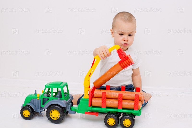 Ребенок играет с лесовозом
