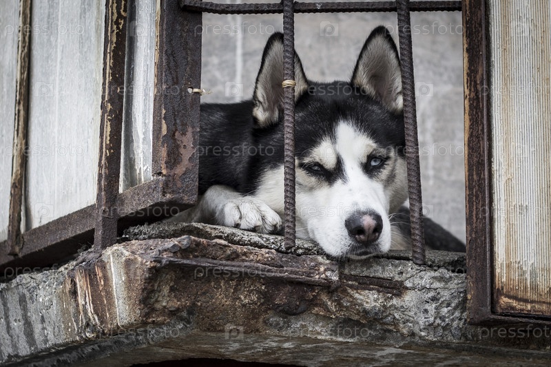 Собака ждет хозяина на балконе