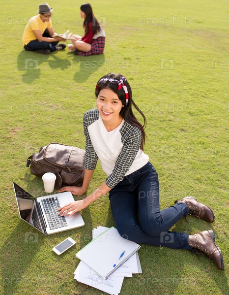 Девушка с ноутбуком на кампусе