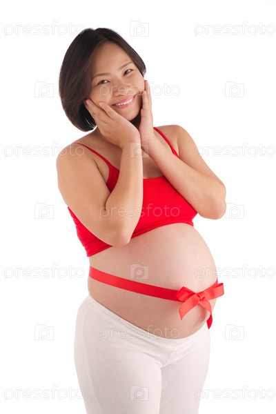 Веселая беременная азиатская женщина