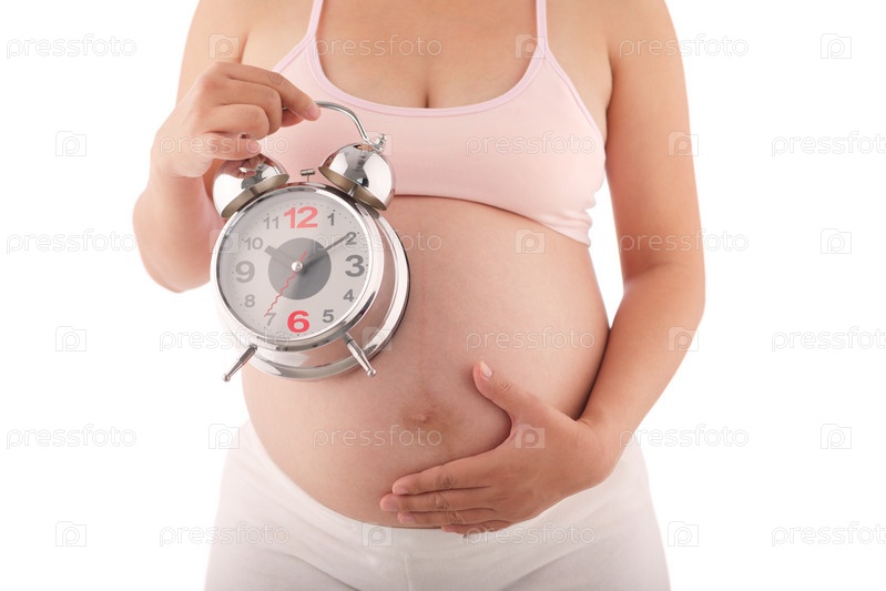 Беременная женщина с будильником