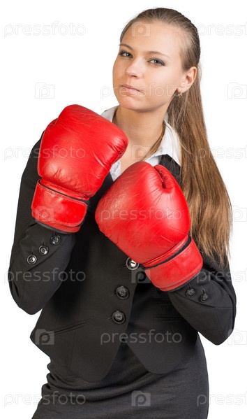 Бизнес-леди в боксерских перчатках