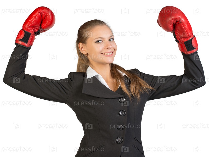 Бизнес-леди в боксерских перчатках