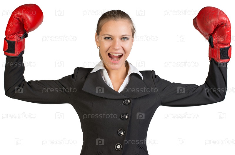 Бизнес-леди в боксерских перчатках