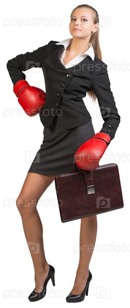 Бизнес-леди в боксерских перчатках