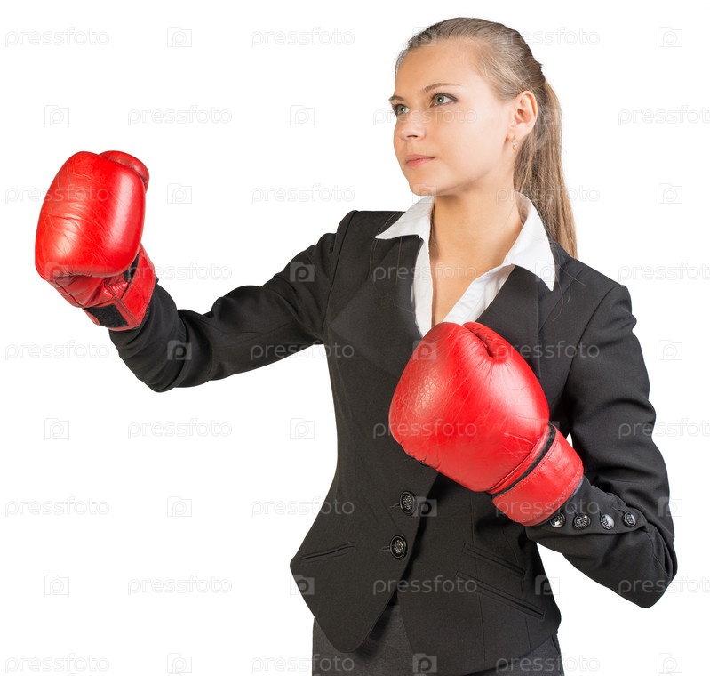 Бизнес-леди в боксерских перчатках