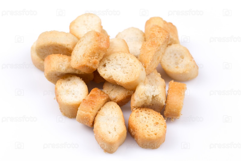 Сухарики из белого хлеба на белом фоне