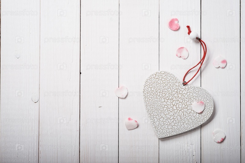 Сердце из дерева с эффектом кракелюр и место для текста. Вид сверху
