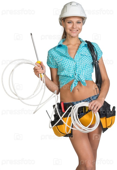 Женщина в каске с инструментами