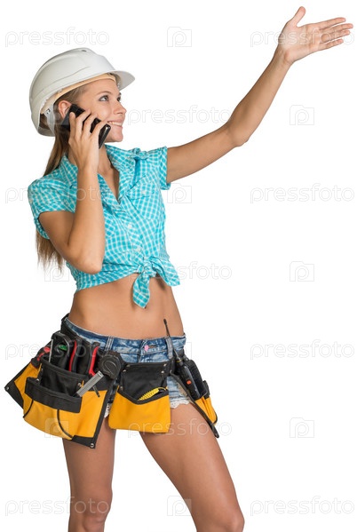 Женщина в каске с инструментами на поясе