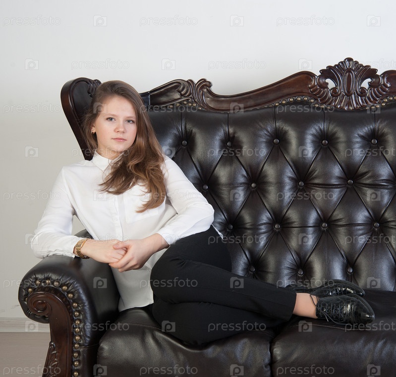 Девушка позирует на диване
