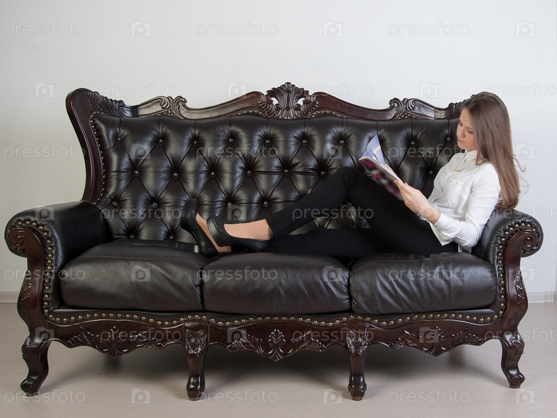 Девушка позирует на диване