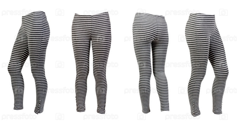 Полосатые серые леггинсы в четырех видах, изолированные на белом фоне