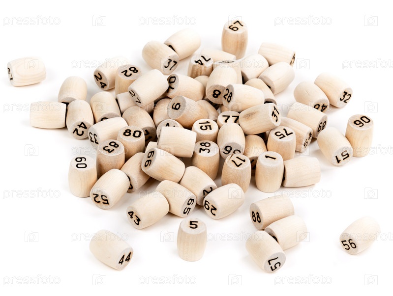 Деревянные бочонки с номерами лото на белом фоне