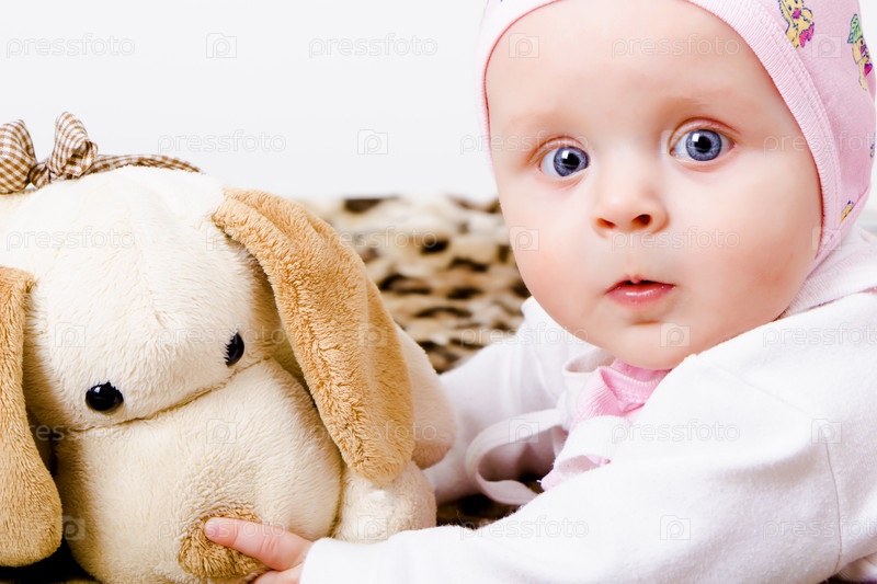 Голубоглазая девочка с мягкой игрушкой