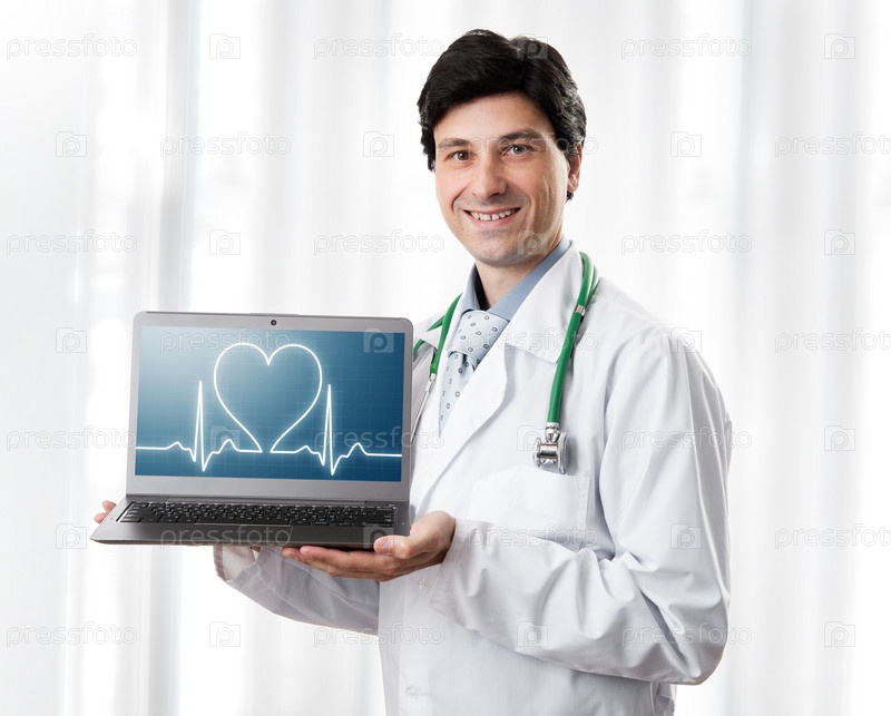 Доктор показывает пульс на ноутбуке