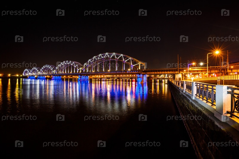 Железнодорожный мост ночью
