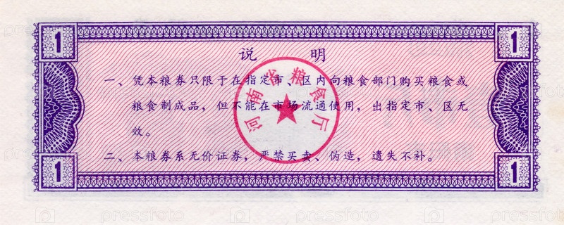 Китайский продовольственный купон, 1980 год, оборотная сторона