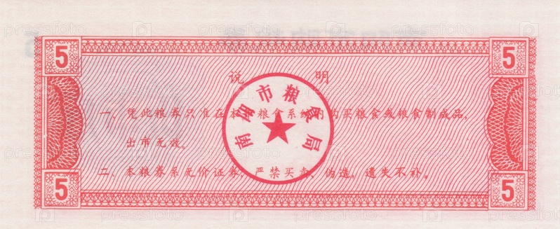 Китайский продовольственный купон, 1983 год, оборотная сторона