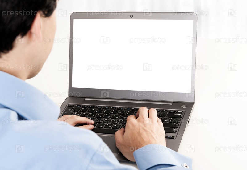 Мужчина перед ноутбуком с пустым экраном