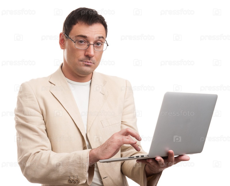 Счастливый мужчина с ноутбуком