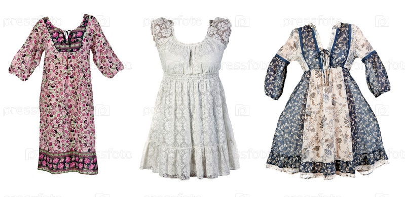 Три летних женских платья на белом фоне, коллаж