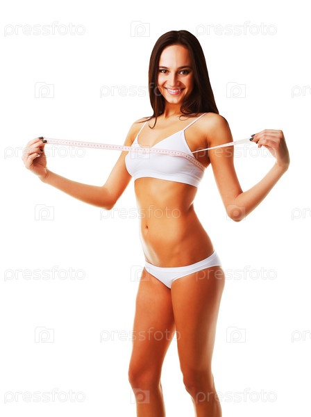 Спортивная женщина измеряет объемы тела