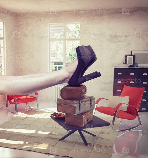 Большая женщина в интерьере