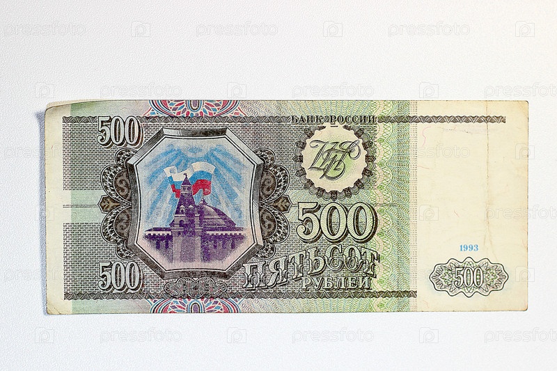 Купюра 500 рублей 1993 года на белом фоне