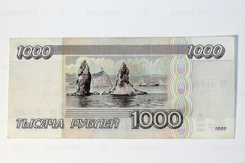 Купюра тысяча рублей 1995 года на белом фоне