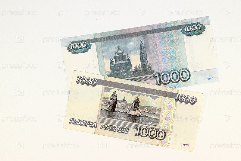 Купюры достоинством 1000 рублей разных годов выпуска