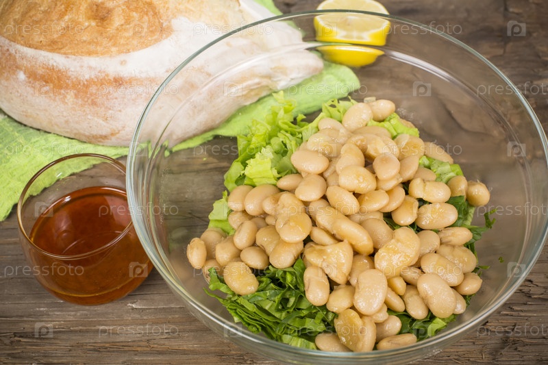Салат с фасолью и кальмарами