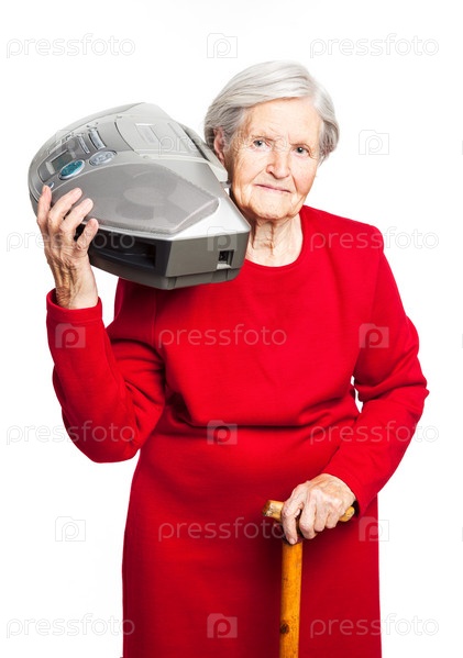 Пожилая женщина слушает музыку