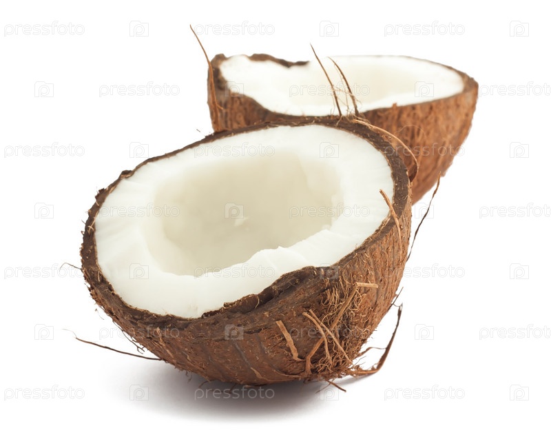 Две половинки кокоса на белом фоне