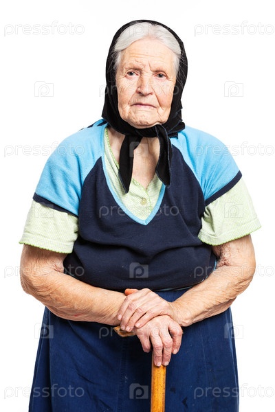 Портрет пожилой женщины на белом фоне