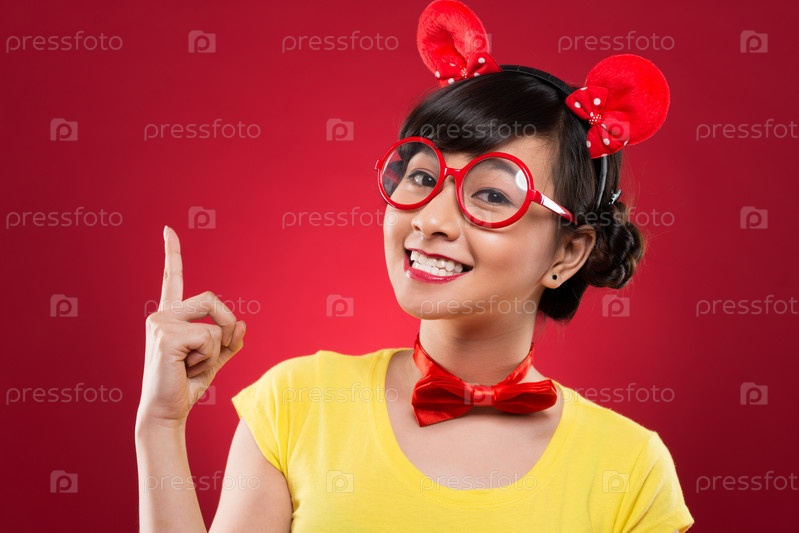 Веселая девушка в пластиковых очках