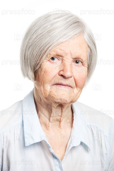 Пожилая женщина на белом фоне