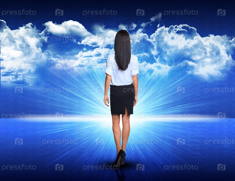 Бизнес-леди на фоне восходящего солнца