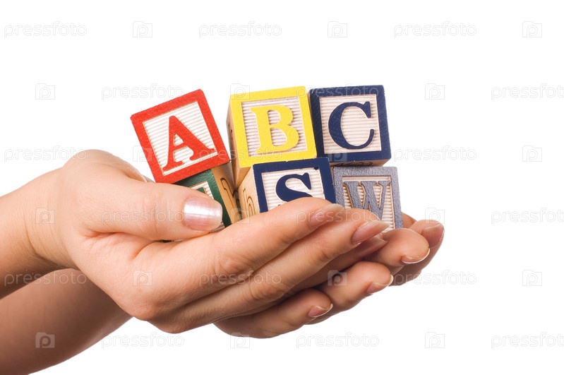 Кубики с буквами в руках