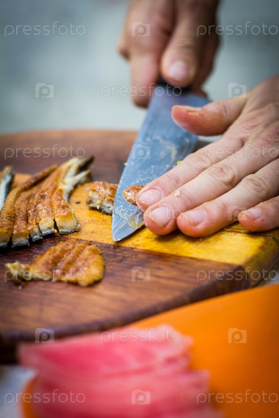 Шеф-повар готовит суши