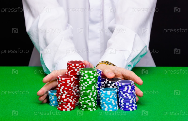 Человек в казино. Руки с фишками
