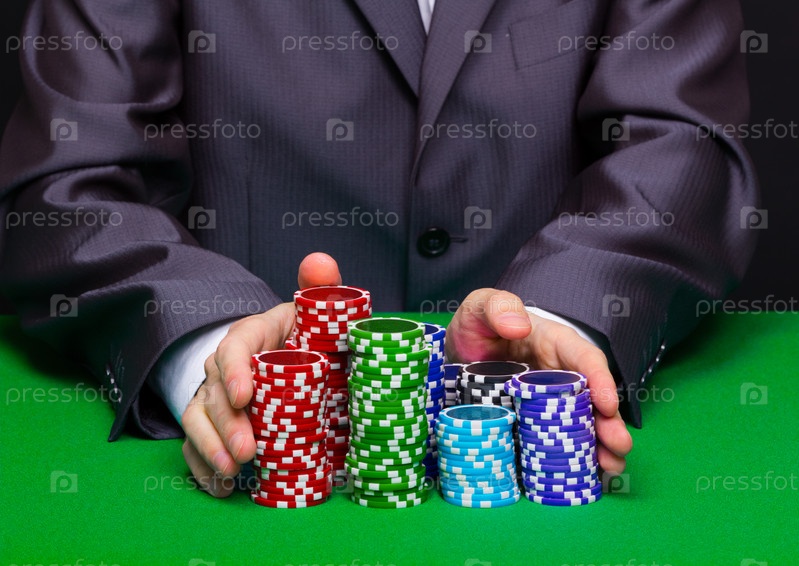 Человек в казино. Руки с фишками