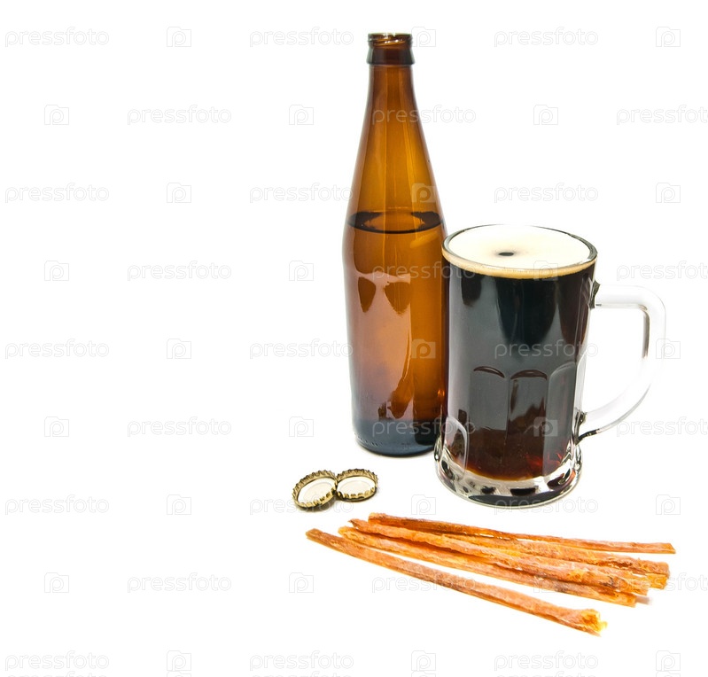Пиво, бутылка и закуска