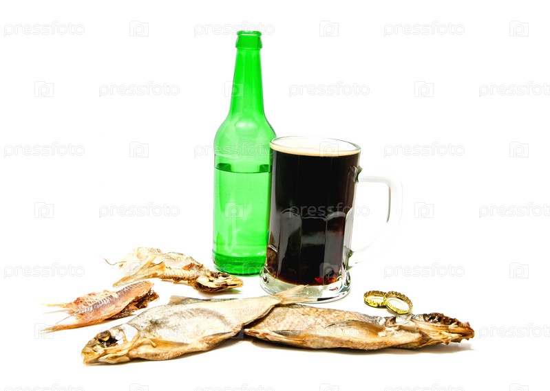 Кружка темного пива и рыба
