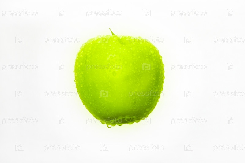 Спелое зеленое яблоко на белом фоне