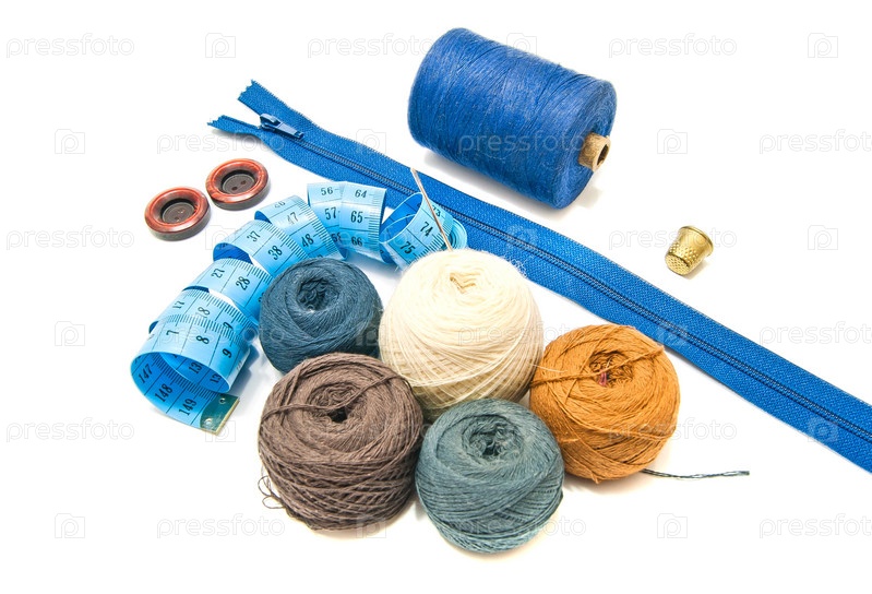 Принадлежности для шитья на белом фоне
