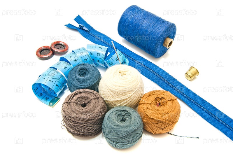 Принадлежности для шитья на белом фоне