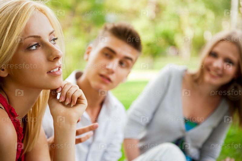 Портрет трех подростков в парке