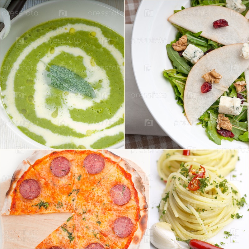 Здоровая и вкусная итальянская еда, коллаж