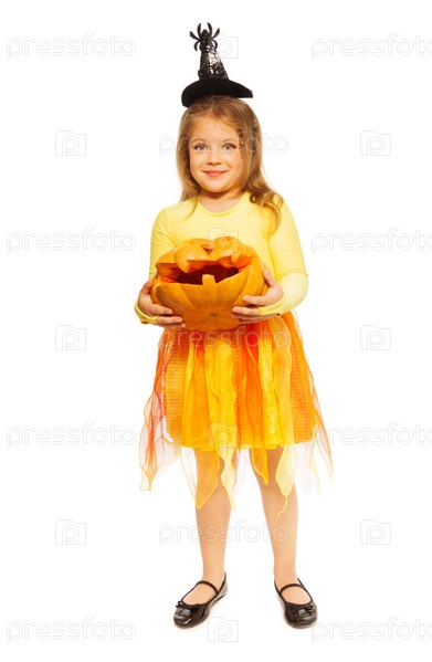 Маленькая девочка с тыквой для Хэллоуина